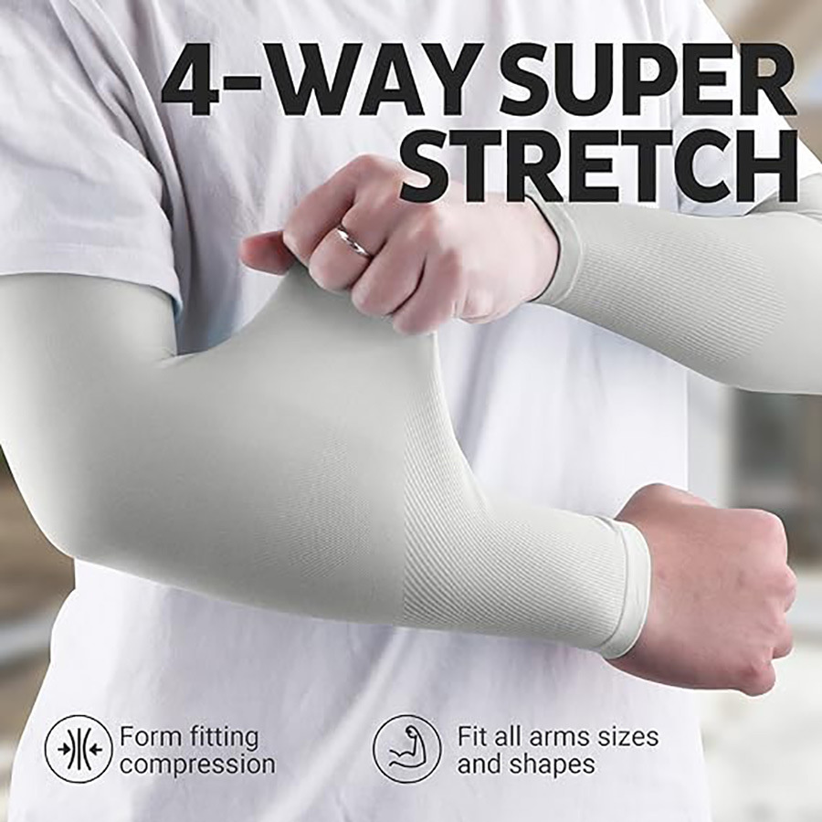 Stretch Fit & Seamless Comfort & Anti-Slip: Our arm sleeves are made of four-way stretch fabric. The stretchy nylon fabric stretches to over 4 times its length, no matter your arms are thick or thin, you won't feel uncomfortable due to strangulation marks. Our arm sleeves fit your arms snugly and are less likely to slip off, while also being more comfortable and not too loose to detract from the wearing experience.