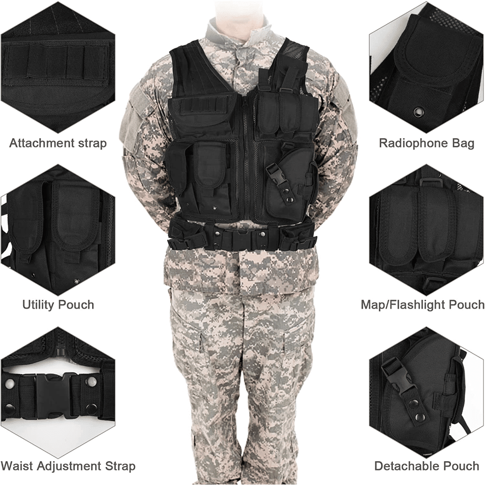 Tactical Vest for Men with Detachable Belt and Subcompact/Compact/Standard Holster for Pistol - Perfect for Airsoft and Military Training Tactical Vest for Men with Detachable Belt and Subcompact/Compact/Standard Holster for Pistol - Perfect for Airsoft and Military Training Tactical Vest for Men with Detachable Belt and Subcompact/Compact/Standard Holster for Pistol - Perfect for Airsoft and Military Training