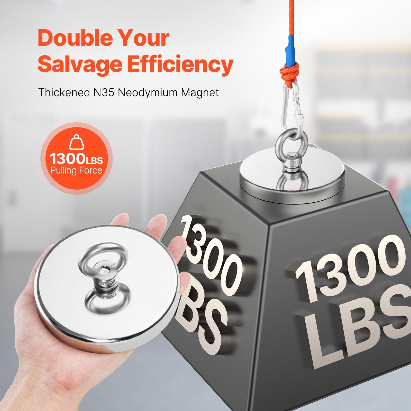 Home > VEVOR Magnet Fishing Kit, 1300 LBS/590 Kg Single-Sided Pulling Force Strong Magnet Fishing Kit